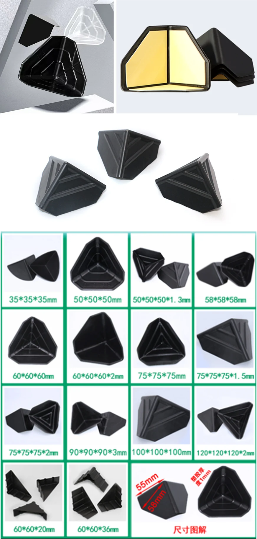 எங்கள் மூன்று பக்க மூலை பாதுகாப்பாளர்கள் வெவ்வேறு சுவர் தடிமன் கொண்ட பரந்த அளவிலான அளவுகளில் கிடைக்கின்றன. தட்டையான சுவர்கள் மற்றும் வலுவூட்டப்பட்ட ரிப்பட் சுவர்கள் ஆகிய இரண்டும் விருப்பங்களில் அடங்கும், இது உங்களுக்கு விரிவான மற்றும் வசதியான சேவையை வழங்க அனுமதிக்கிறது.
